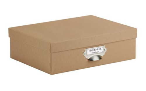 Kiváló minőségű Rössler SOHO tárolódoboz fém fogóval, kraft. Irodája nem csak rendezett lesz, de stílusos is.