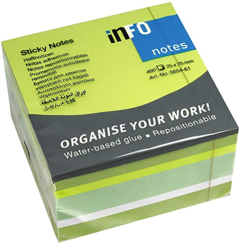 Info Notes öntapadós jegyzettömb, 75x75 mm, 450 lap, brilliant zöld mix