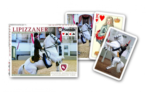 Piatnik francia kártya, lipicai lovak mintával. Kitűnő minőségben, díszes hátlappal, egyedi mintával.